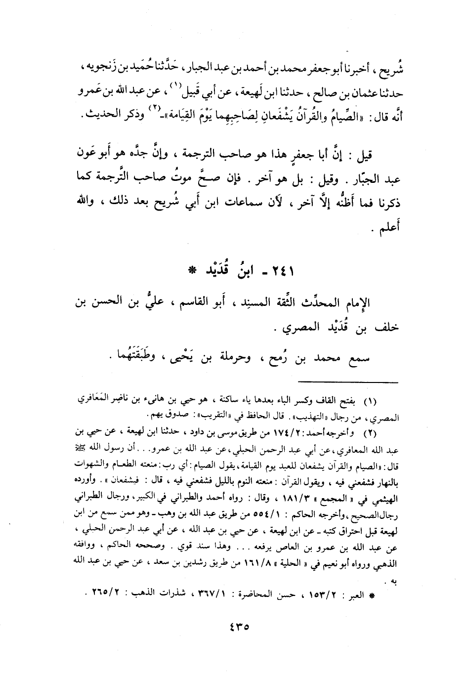 (1) بفتح القاف وكسر الباء بعدها ياء ساكنة، هو حيي بن هانئ بن ناضر المعافري المصري، من رجال " التهذيب ".