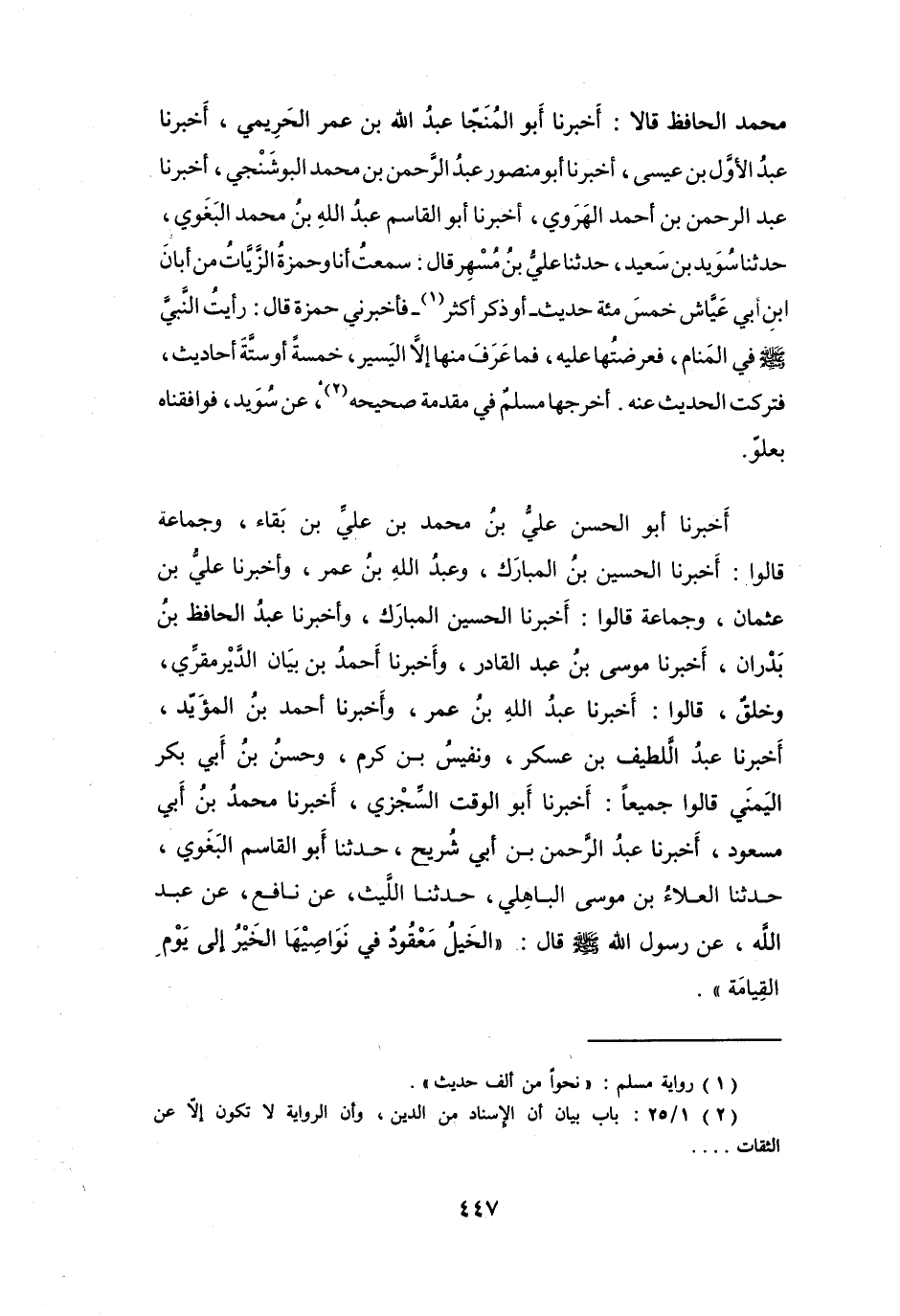 أَخْرَجَهَا: مُسْلِمٌ فِي مُقَدِّمَةِ (صَحِيْحِهِ (2)) ، عَنْ سُوَيْدٍ، فَوَافَقْنَاهُ بِعُلُوٍّ.