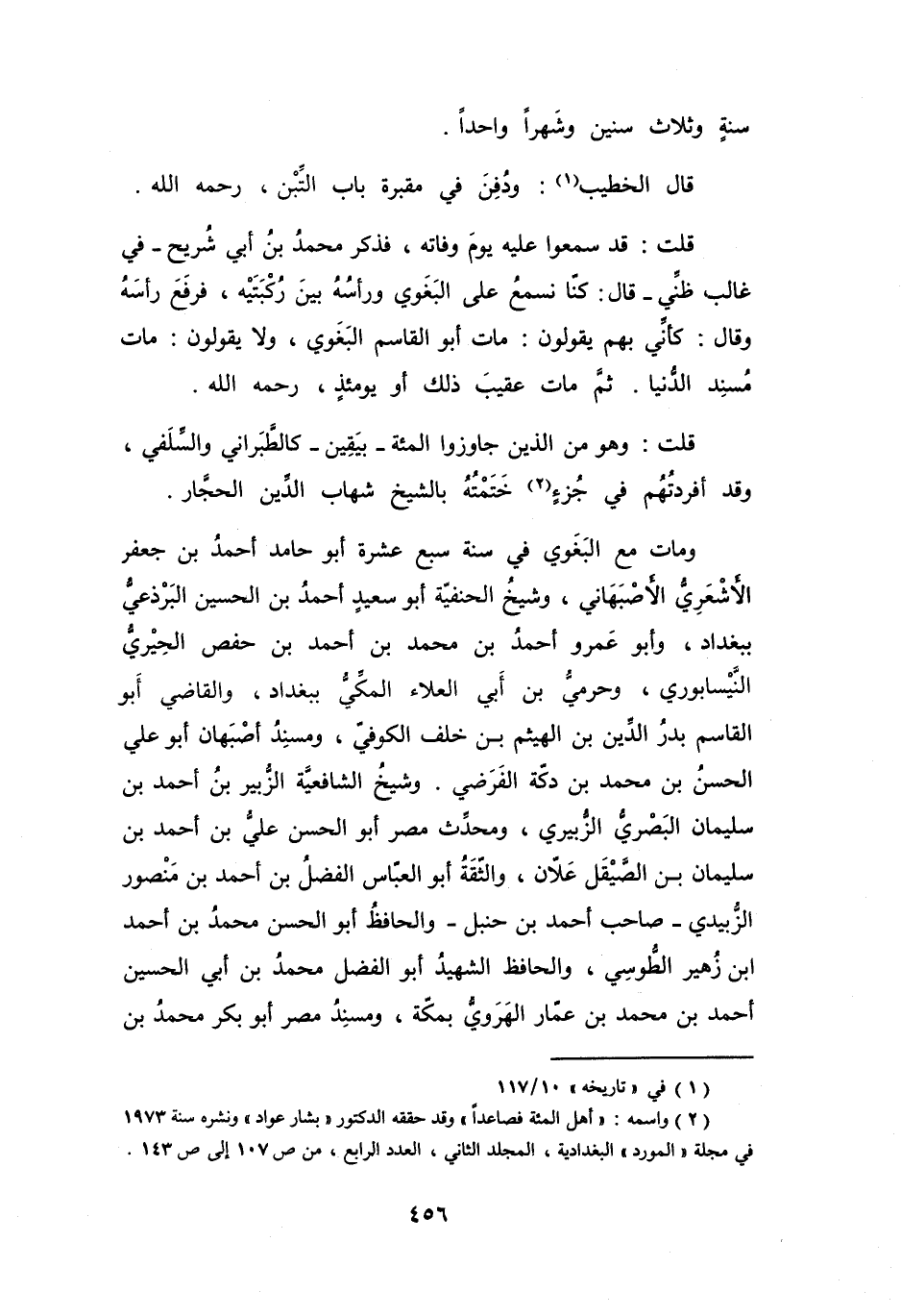 (2) واسمه: " أهل المئة فصاعدا " وقد حققه الدكتور " بشار عواد " ونشره سنة 1973 في مجلة " المورد " البغدادية، المجلد الثاني، العدد الرابع، من ص 107 إلى ص 143.