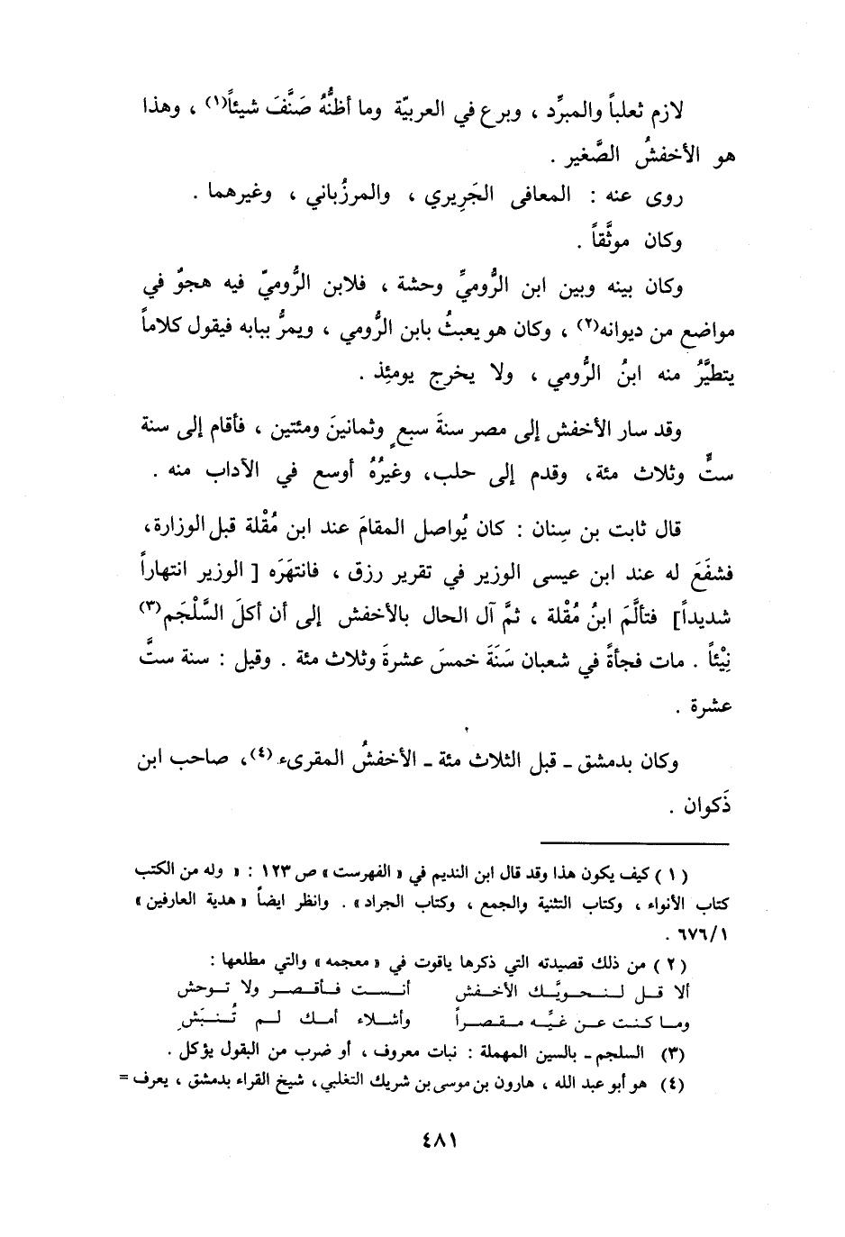 وَقَدْ سَارَ الأَخْفَشُ إِلَى مِصْرَ سَنَةَ سَبْعٍ وَثَمَانِيْنَ وَمائَتَيْنِ، فَأَقَامَ إِلَى سَنَةِ سِتٍّ وَثَلاَثِ مائَةٍ، وَقَدِمَ إِلَى حَلَبَ، وَغَيْرُهُ أَوسَعُ فِي الآدَابِ مِنْهُ.