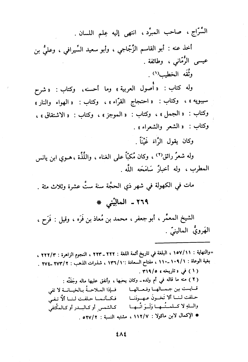 السَّرَّاجِ، صَاحِبُ المُبَرِّدِ، انْتَهَى إِلَيْهِ عِلمُ اللِّسَانِ.