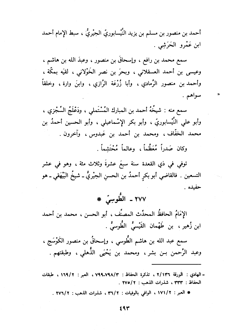277 - الطُّوْسِيُّ أَبُو الحَسَنِ مُحَمَّدُ بنُ أَحْمَدَ بنِ زُهَيْرٍ *