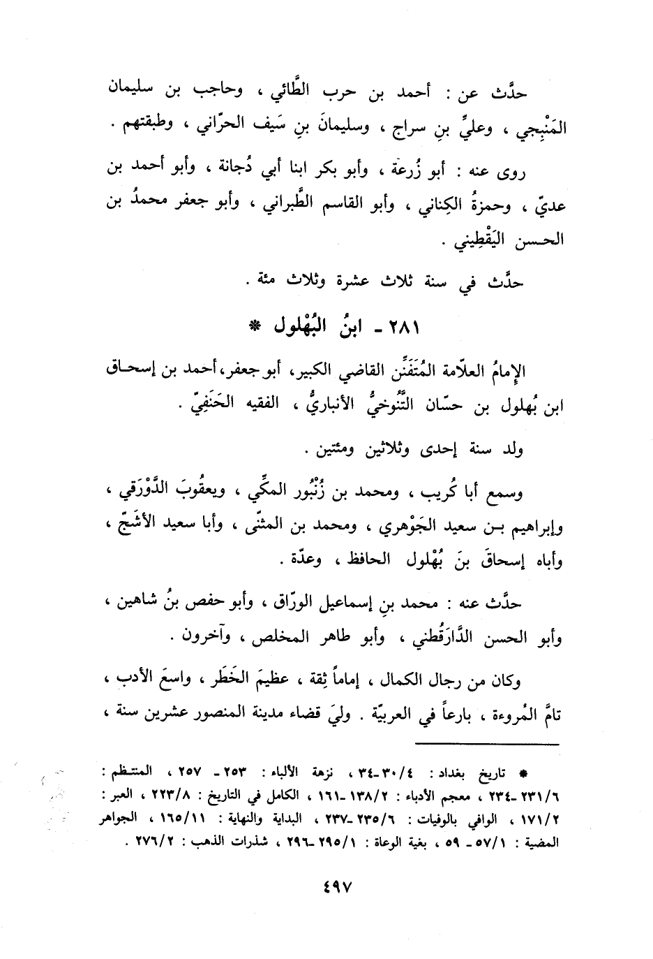 281 - ابْنُ البُهْلُوْلِ أَبُو جَعْفَرٍ أَحْمَدُ بنُ إِسْحَاقَ التَّنُوْخِيُّ *