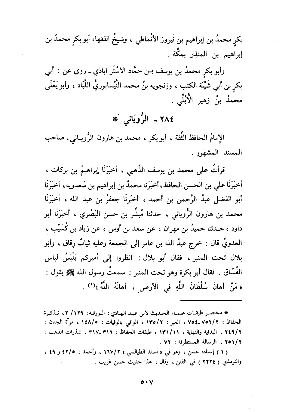 284 - الرُّوْيَانِيُّ أَبُو بَكْرٍ مُحَمَّدُ بنُ هَارُوْنَ *