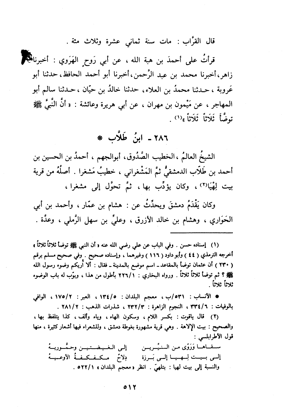 286 - ابْنُ طَلاَّبٍ أَبُو الجَهْمِ أَحْمَدُ بنُ الحُسَيْنِ بنِ أَحْمَدَ *