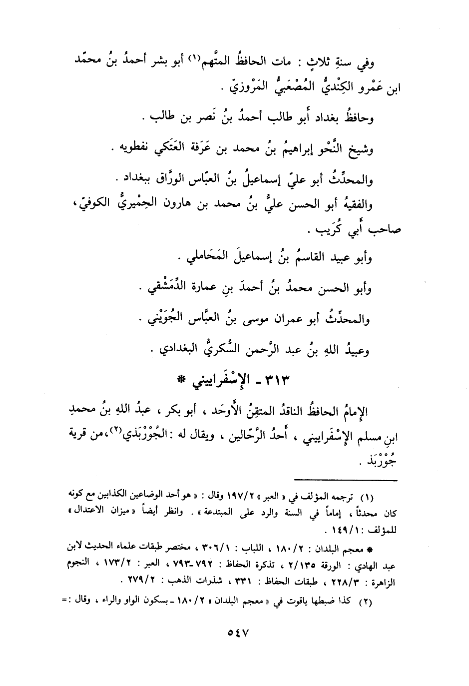 313 - الإِسْفَرَايِيْنِيُّ أَبُو بَكْرٍ عَبْدُ اللهِ بنُ مُحَمَّدِ بنِ مُسْلِمٍ *