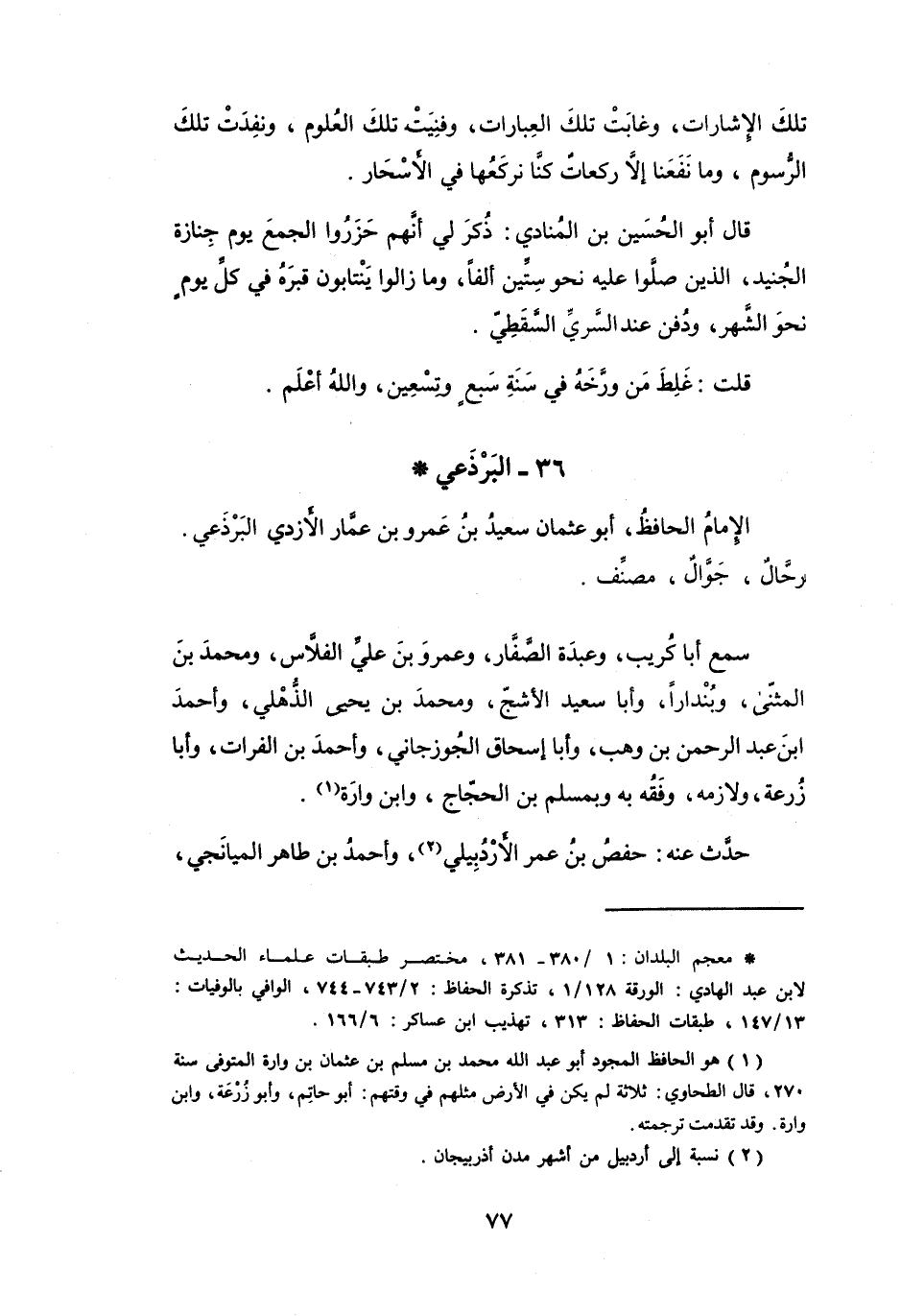 36 - البَرْذَعِيُّ أَبُو عُثْمَانَ سَعِيْدُ بنُ عَمْرِو بنِ عَمَّارٍ *