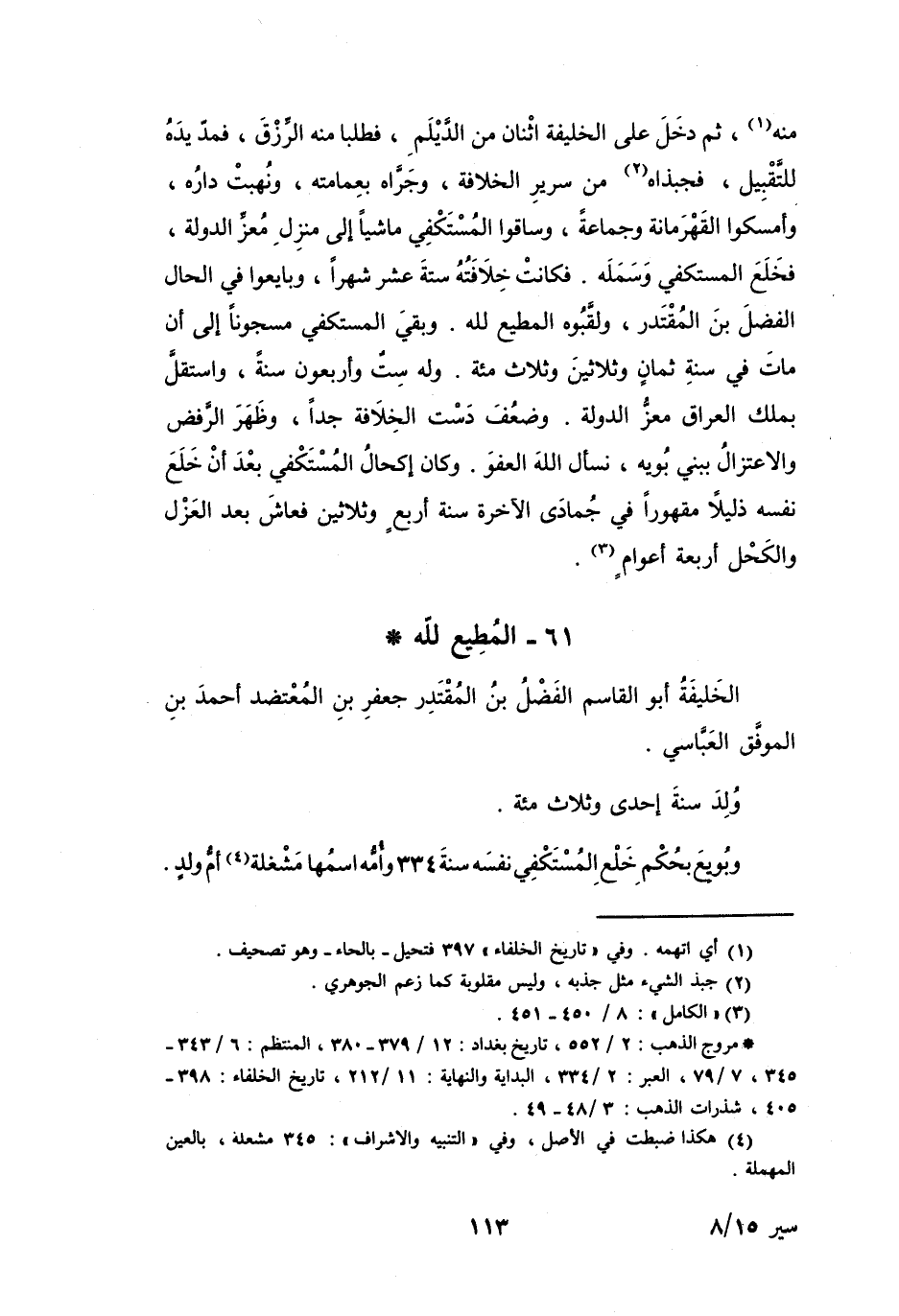 61 - المُطِيعُ للهِ الفَضْلُ ابنُ المُقْتَدِرِ جَعْفَرِ بنِ المُعْتَضِدِ *