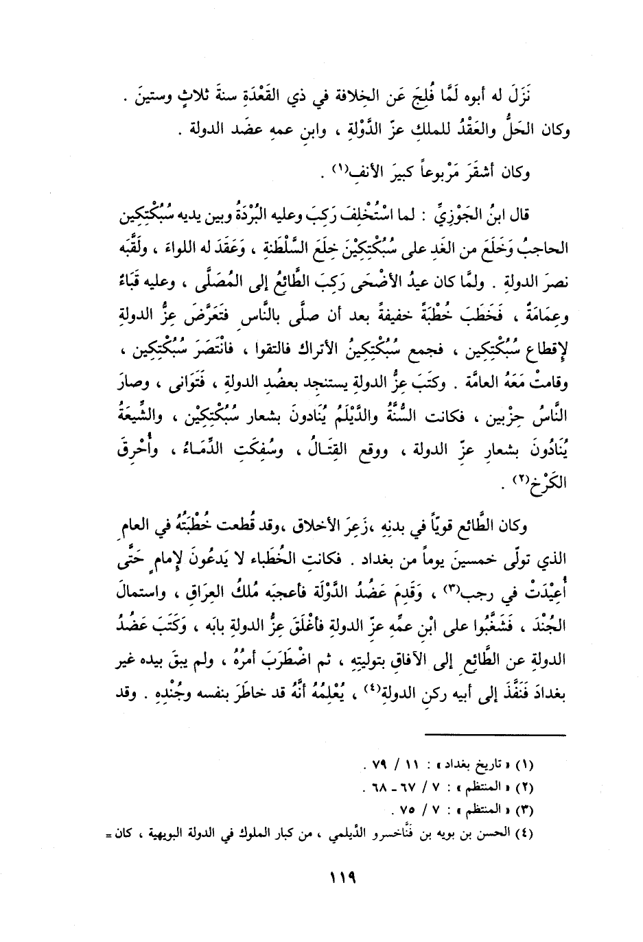وَكَانَ الحَلُّ وَالعَقْدُ لِلْملكِ عزّ الدَّوْلَةِ، وَابْنِ عَمِّهِ عضُد الدَّوْلَة.
