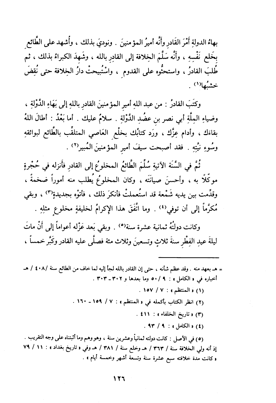 وَكَتَبَ القَادِرُ: مِنْ عَبْدِ اللهِ أَمِيْرِ المُؤْمِنِيْنَ القَادِرِ بِاللهِ إِلَى بَهَاءِ الدَّوْلَةِ، وضيَاءِ المِلَّةِ أَبِي نَصْر بنِ عضُدِ الدَّوْلَةِ.