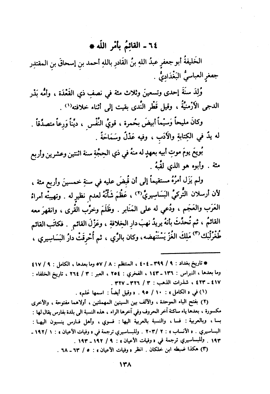 64 - القَائِم بِأَمْرِ اللهِ عَبْدُ اللهِ ابنُ القَادِرِ بِاللهِ بنِ إِسْحَاقَ *