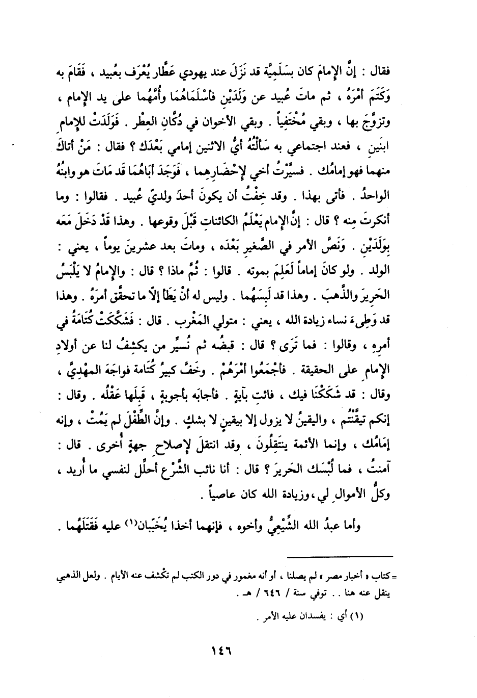 قَالَ: قبضُه ثُمَّ نُسيِّر مَنْ يكشِفُ لَنَا عَنْ أَوْلاَدِ الإِمَامِ عَلَى الحَقِيْقَة.