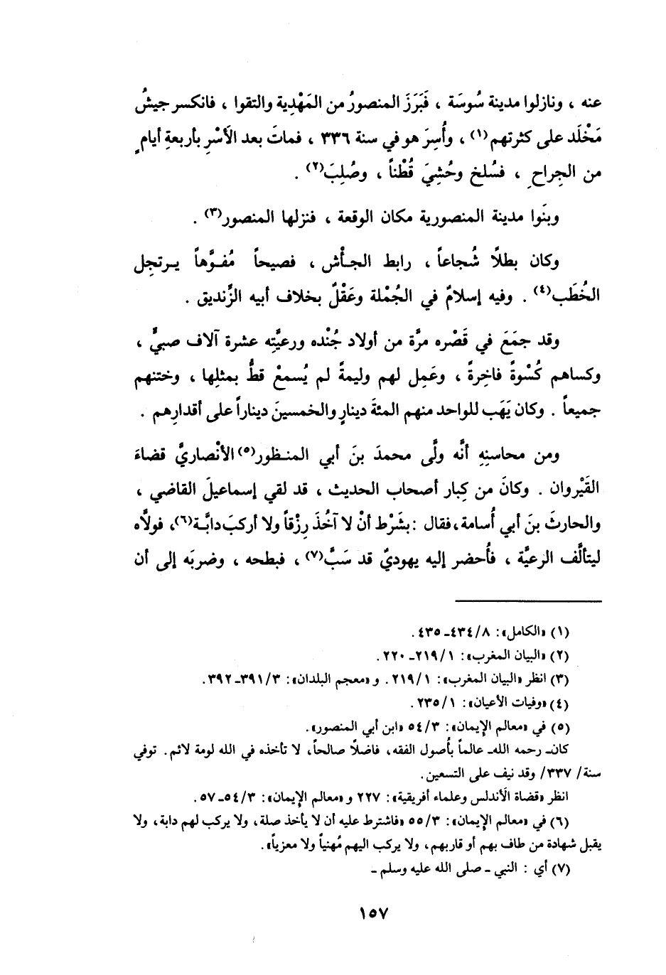 (5) في " معالم الايمان ": 3 / 54 " ابن أبي المنصور ". كان - رحمه الله - عالما بأصول الفقه، فاضلا صالحا، لا تأخذه في الله لومة لائم. توفي سنة / 337 / وقد نيف على التسعين.