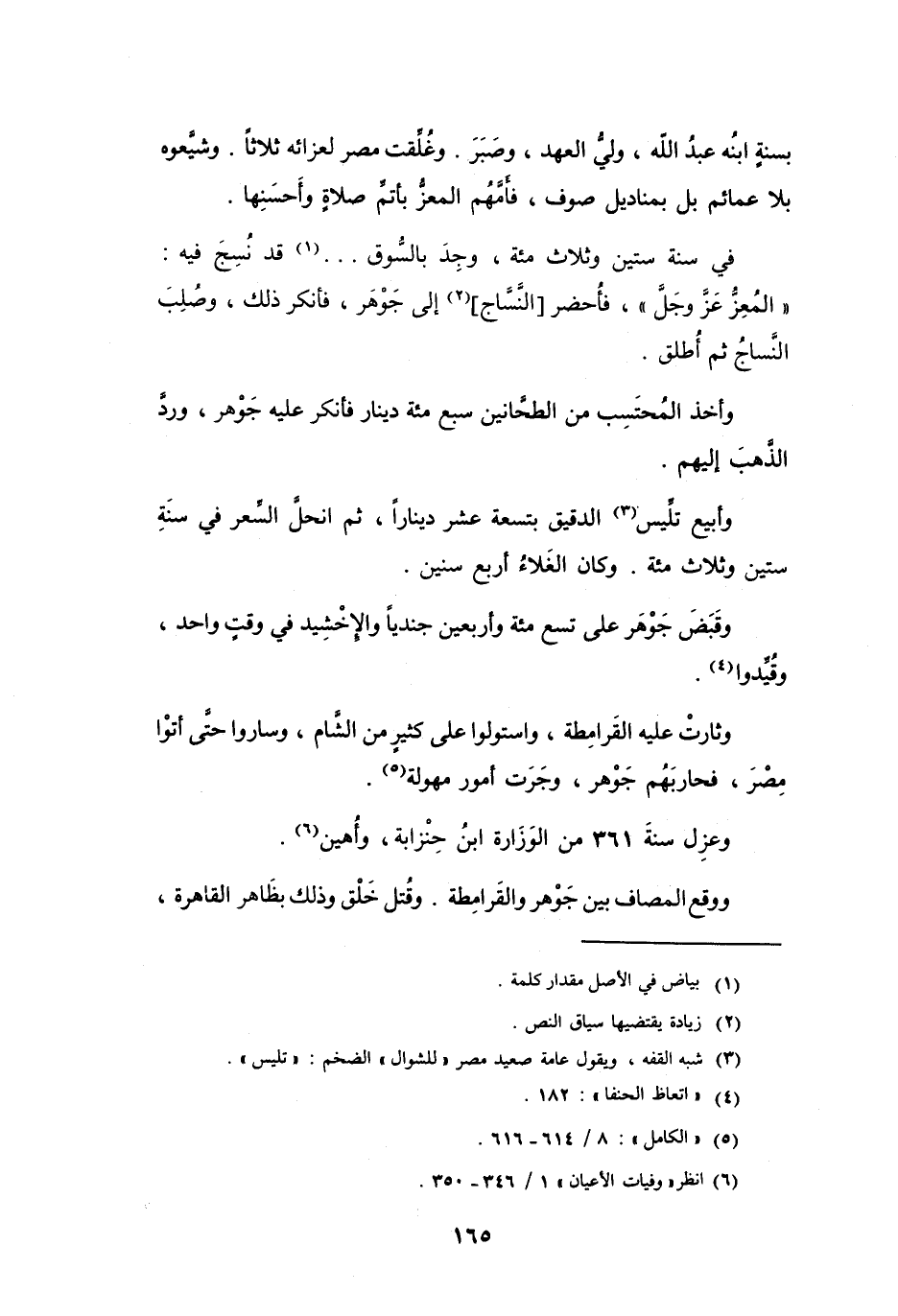 فِي سنَة سِتِّيْنَ وَثَلاَثِ مائَةٍ وَجد بِالسُّوق ... (1) قَدْ نسج فِيْهِ المُعَزِّ - عَزَّ وَجَلَّ - فَأَحضر النسَاج (2) إِلَى الْجَوْهَر فَأَنْكَرَ ذَلِكَ وَصلب النسَاج ثُمَّ أَطلق.