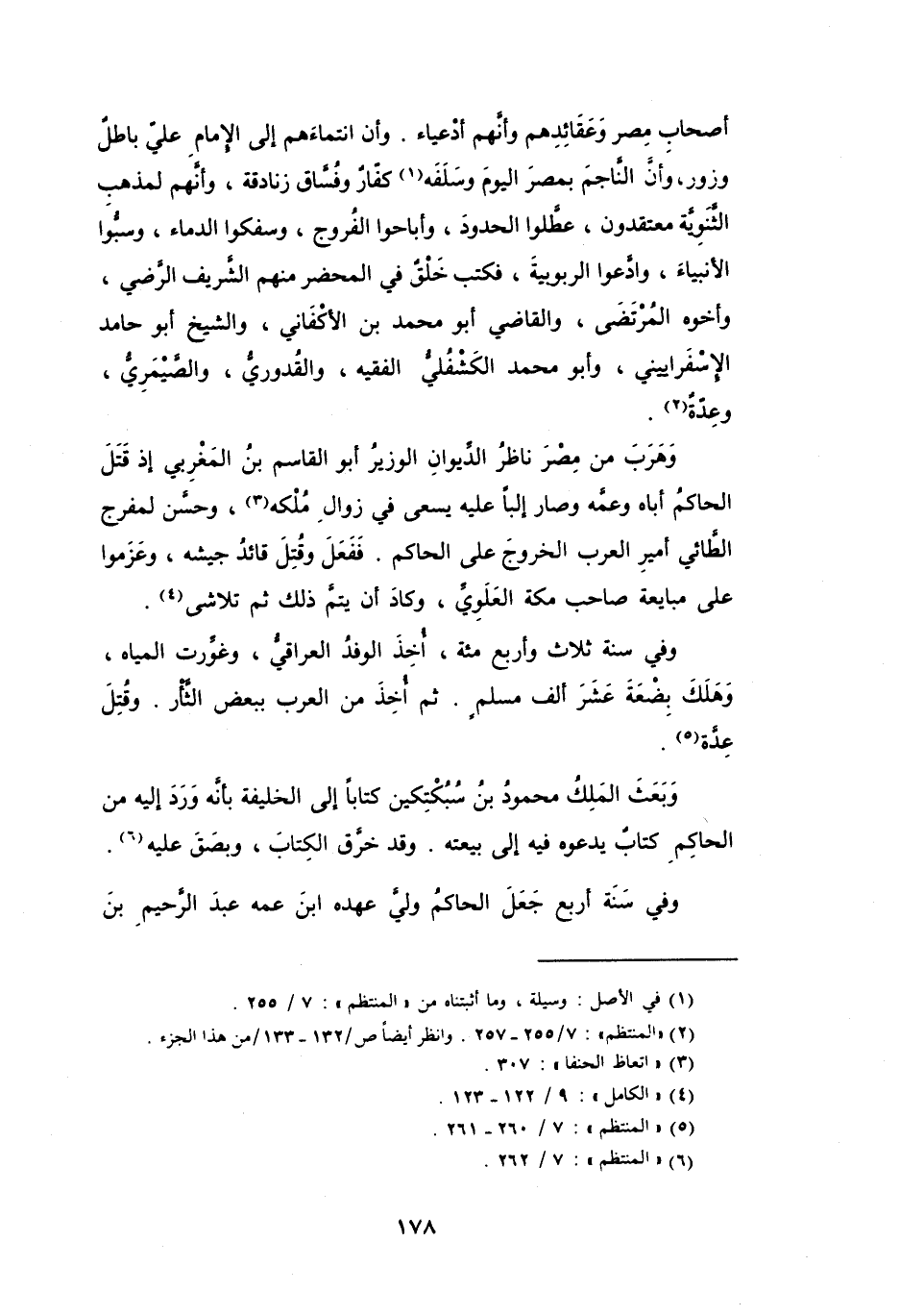 وَأَنَّ انتمَاءهُم إِلَى الإِمَامِ عَلِيّ بَاطِلٌ وَزور، وَأَنَّ النَّاجمَ بِمِصْرَ اليَوْمَ وَسَلَفَه (1) كفّارٌ وَفُسَّاق وزنَادقَة، وَأَنَّهُم لمَذْهَبِ الثَّنَوِيَّة معتقدُوْنَ، عطَّلُوا الحُدُوْدَ، وَأَباحُوا الفُروج، وَسفكُوا الدِّمَاء، وَسبُّوا الأَنْبِيَاءَ، وَادَّعُو الربوبيَةَ، فَكَتَبَ خَلْقٌ فِي الْمحْضر مِنْهُم الشَّرِيْف الرَّضِي، وَأَخُوْهُ المُرْتَضَى، وَالقَاضِي أَبُو مُحَمَّدٍ بنُ الأَكْفَانِي، وَالشَّيْخ أَبُو حَامِدٍ الإِسْفَرَايينِي، وَأَبُو مُحَمَّدٍ الكَشْفُلِيُّ الفَقِيْه، وَالقُدورِيُّ، وَالصَّيْمَرِيُّ، وَعِدَّةٌ (2) .