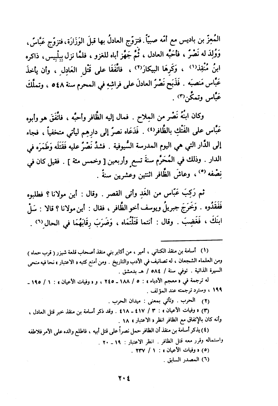 (4) يذكر أسامة بن منقذ أن الظافر حمل نصرا على قتل أبيه، فاطلع والده على الامر فلاطفه واستماله وقرر معه قتل الظافر.