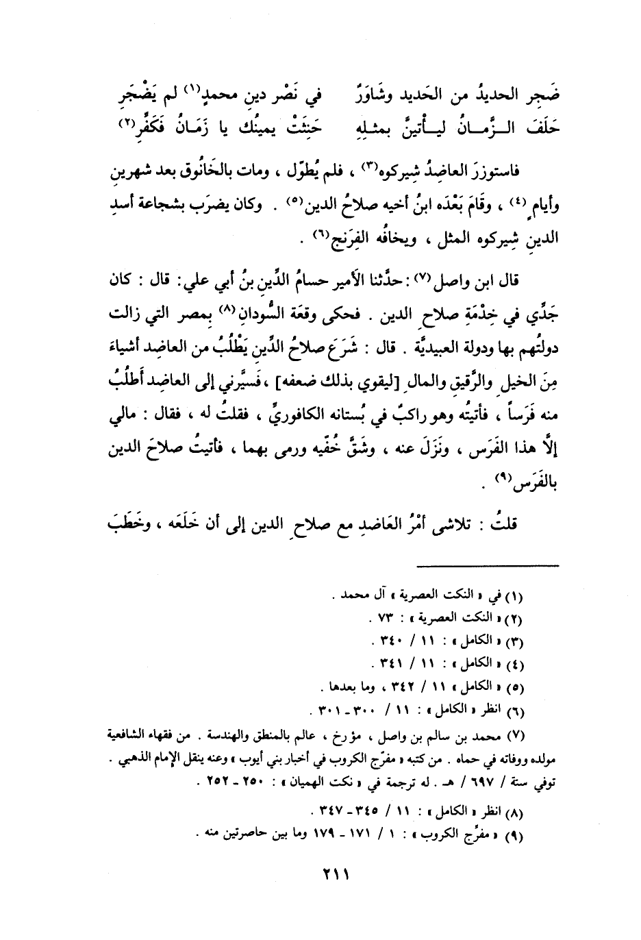 قَالَ ابْنُ وَاصل (7) :حَدَّثَنَا الأَمِيْر حسَامُ الدِّينِ بنُ أَبِي عَلِيٍّ قَالَ: