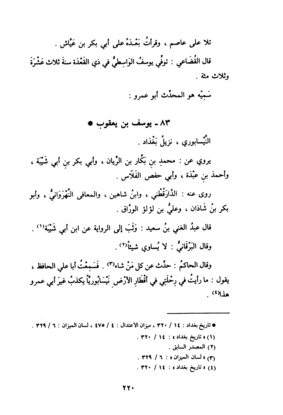 (*) تاريخ بغداد: 14 / 320، ميزان الاعتدال: 4 / 475، لسان الميزان: 6 / 329.