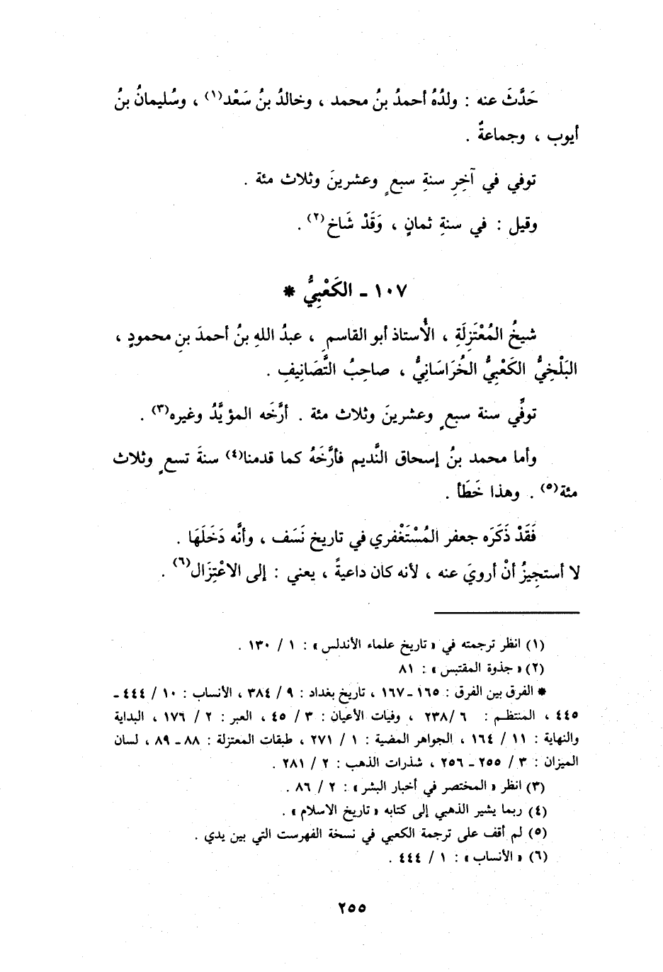 (5) لم أقف على ترجمة الكعبي في نسخة الفهرست التي بين يدي.