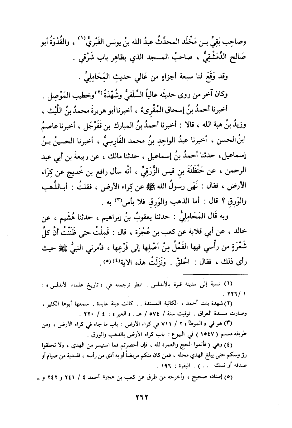 وَبِهِ قَالَ المَحَامِلِيّ، حَدَّثَنَا يَعْقُوْبُ بنُ إِبْرَاهِيْمَ، حَدَّثَنَا هُشَيْم، عَنْ خَالِدٍ، عَنْ أَبِي قِلاَبَةَ، عَنْ كَعْب بن عجرَة قَالَ: