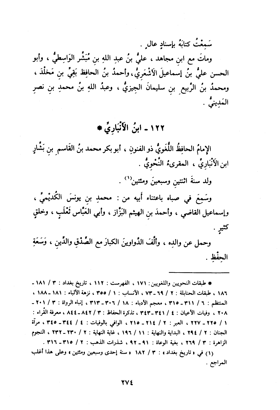 122 - ابْنُ الأَنْبَارِيِّ أَبُو بَكْرٍ مُحَمَّدُ بنُ القَاسِمِ بنِ بَشَّارٍ *