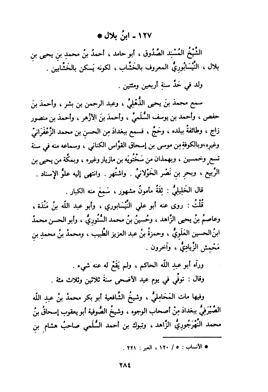 127 - ابْنُ بِلاَلٍ أَحْمَدُ بنُ مُحَمَّدِ بنِ يَحْيَى النَّيْسَابُوْرِيُّ *