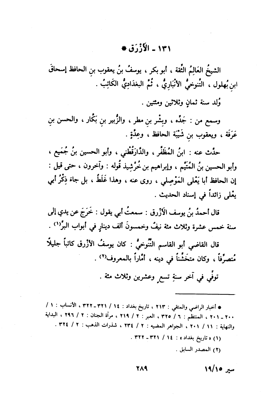 131 - الأَزْرَقُ أَبُو بَكْرٍ يُوْسُفُ بنُ يَعْقُوْبَ بنِ إِسْحَاقَ *