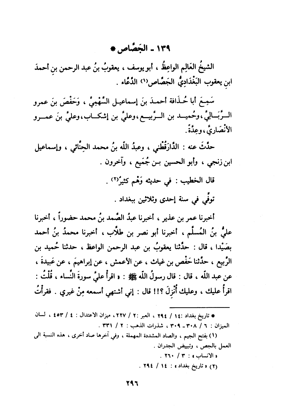 139 - الجَصَّاصُ يَعْقُوْبُ بنُ عَبْدِ الرَّحْمَنِ بنِ أَحْمَدَ *
