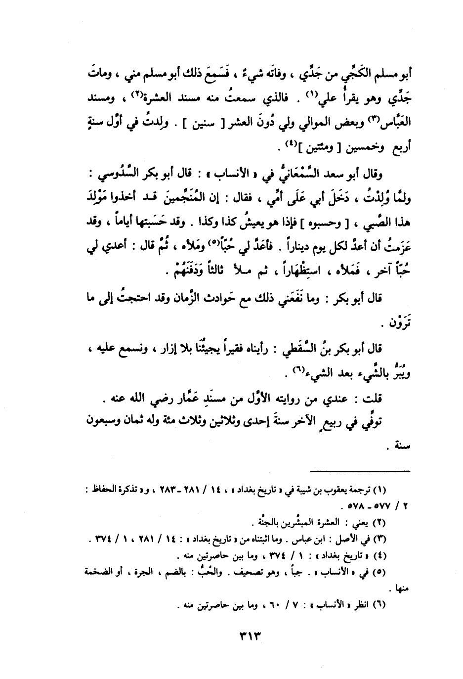 (4) " تاريخ بغداد ": 1 / 374، وما بين حاصرتين منه.