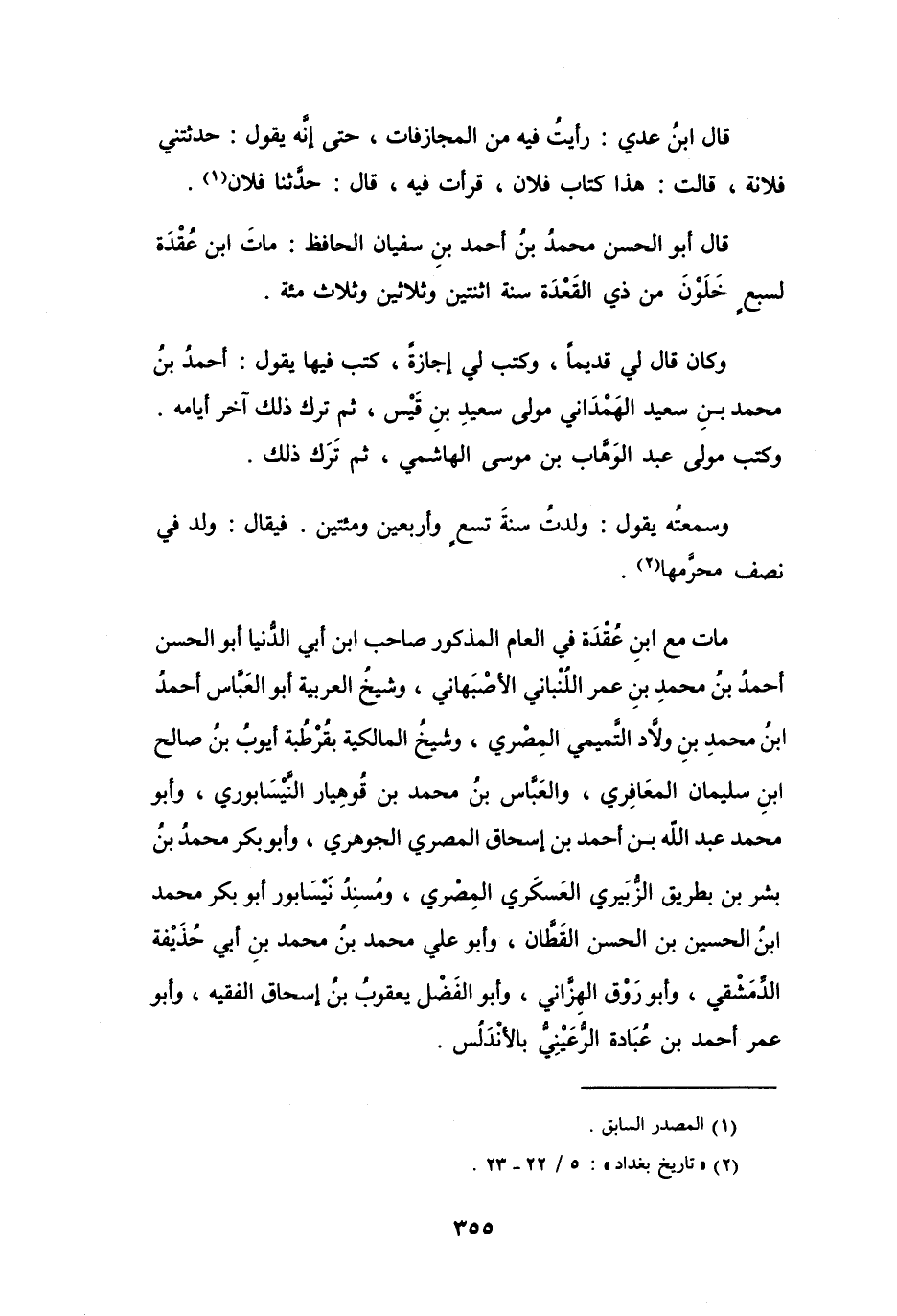 (2) " تاريخ بغداد ": 5 / 22 - 23.