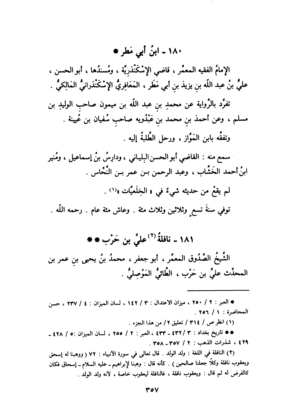 (* *) تاريخ بغداد: 3 / 432 - 433، العبر: 2 / 255، لسان الميزان: 5 / 428 - 429، شذرات الذهب: 2 / 357 - 358.