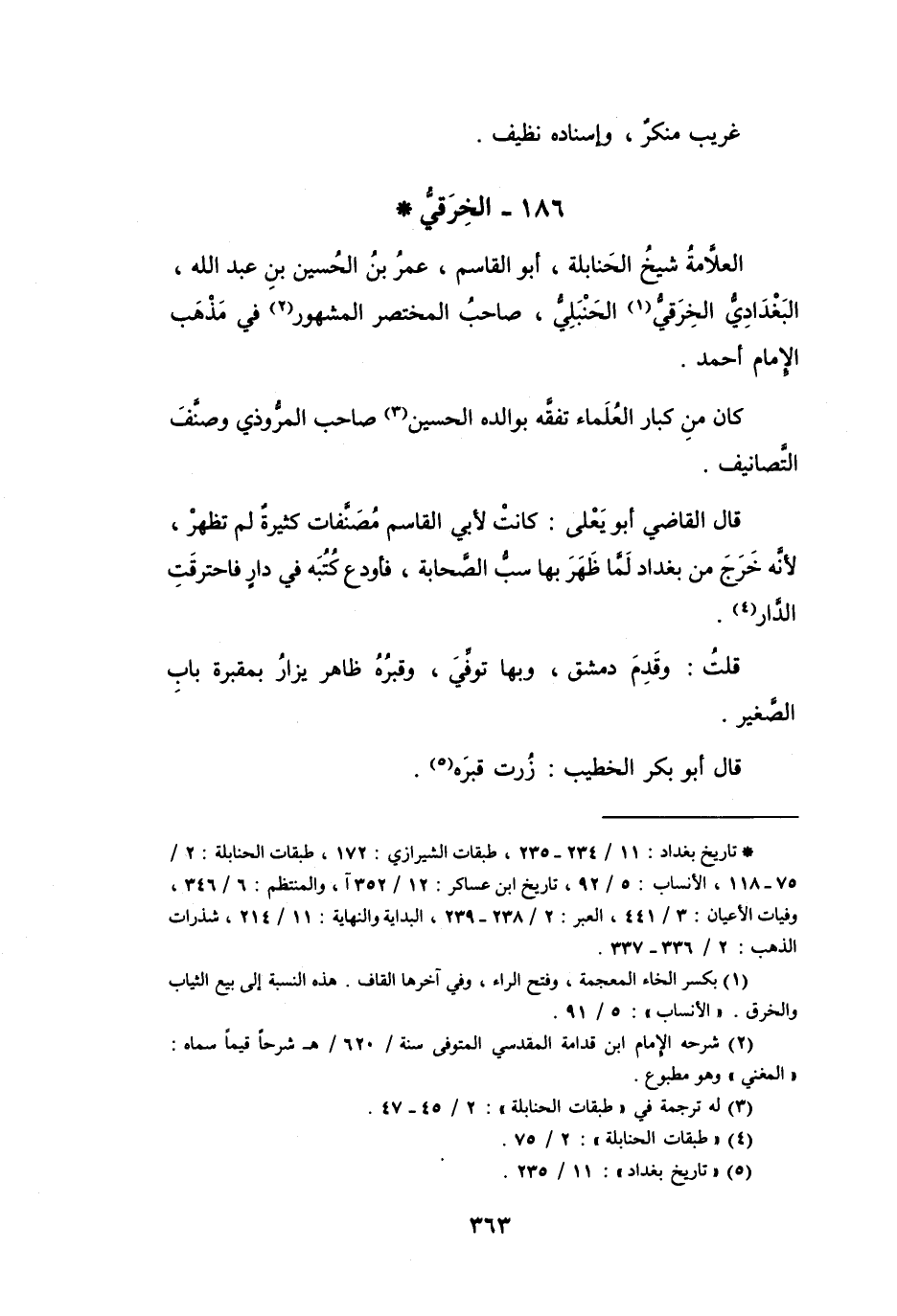 186 - الخِرَقيُّ أَبُو القَاسِمِ عُمَرُ بنُ الحُسَيْنِ بنِ عَبْدِ اللهِ *