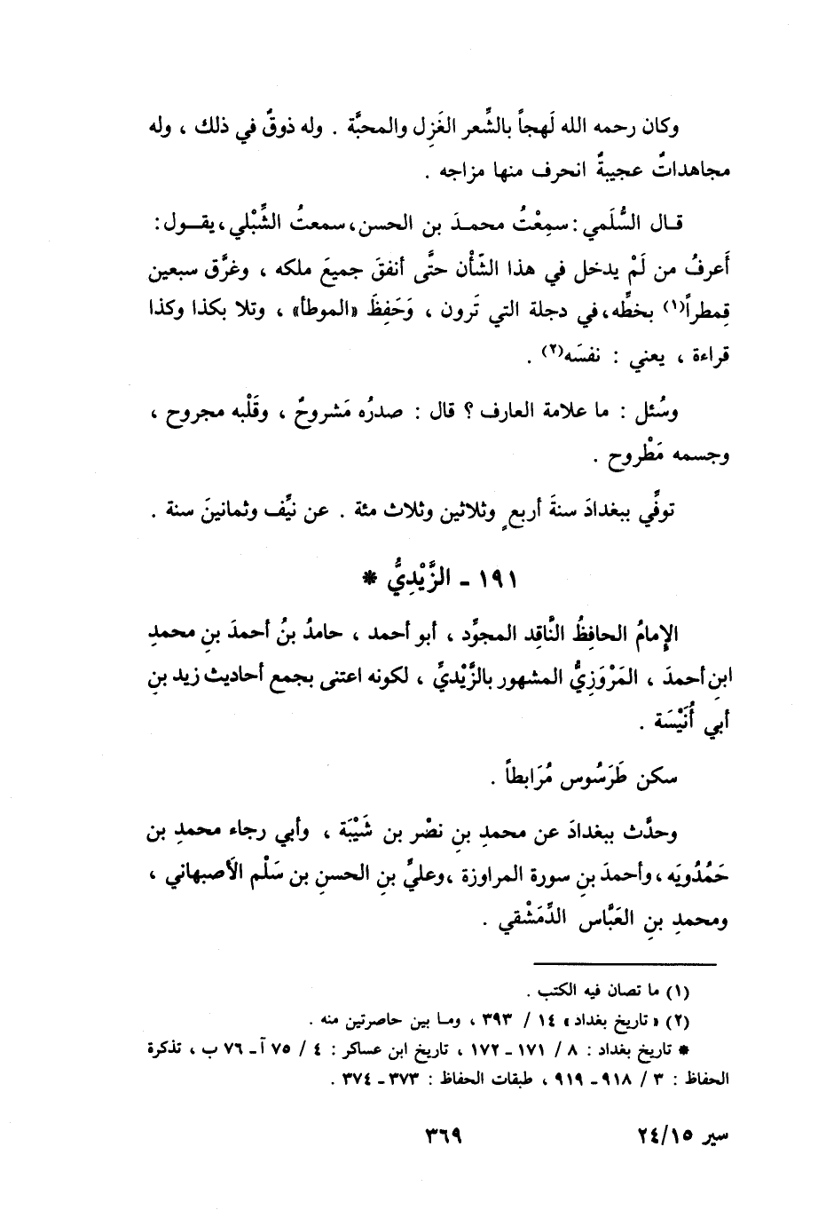 (2) " تاريخ بغداد ": 14 / 393، وما بين حاصرتين منه.