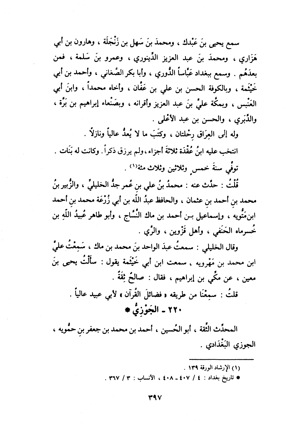 220 - الجَوْزِيُّ أَبُو الحُسَيْنِ أَحْمَدُ بنُ مُحَمَّدِ بنِ جَعْفَر *