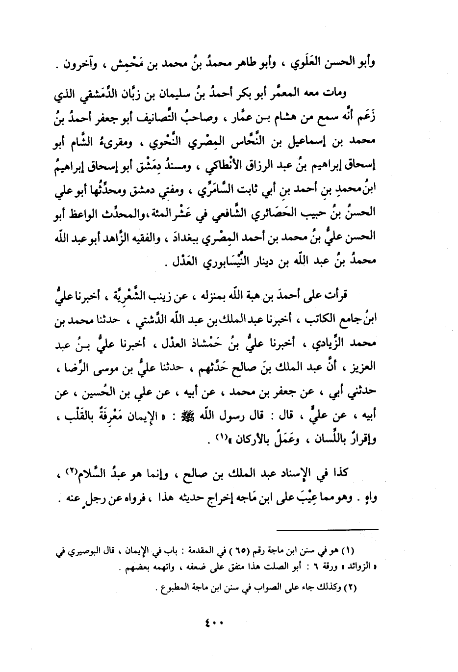 (1) هو في سنن ابن ماجة رقم (65) في المقدمة: باب في الايمان، قال البوصيري في " الزوائد " ورقة 6: أبو الصلت هذا متفق على ضعفه، واتهمه بعضهم.