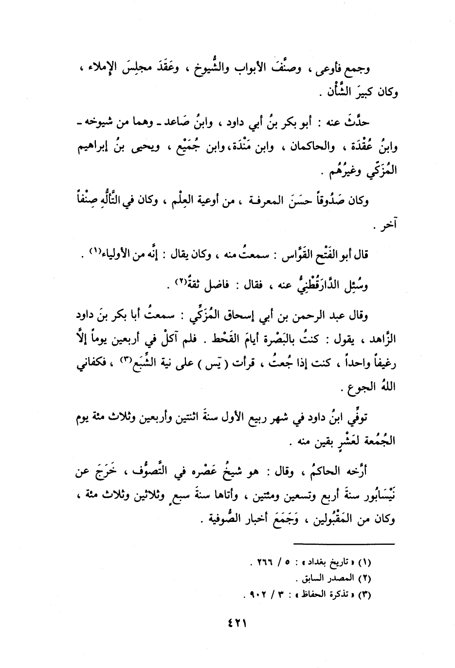 وَقَالَ عَبْدُ الرَّحْمَنِ بنُ أَبِي إِسْحَاقَ المُزَكّي: سَمِعْتُ أَبَا بَكْرٍ بنَ دَاوُدَ الزَّاهِد يَقُوْلُ: