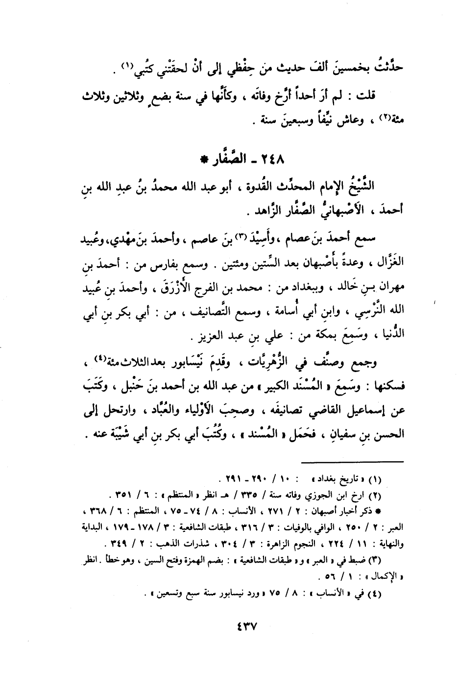 248 - الصَّفَّارُ أَبُو عَبْدِ اللهِ مُحَمَّدُ بنُ عَبْدِ اللهِ بنِ أَحْمَدَ *