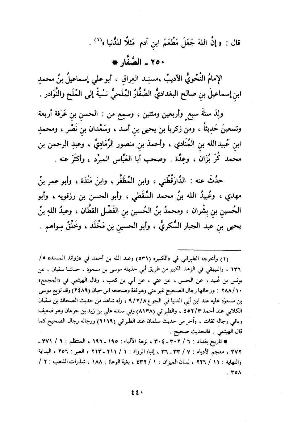 250 - الصَّفَّارُ إِسْمَاعِيْلُ بنُ مُحَمَّدِ بنِ إِسْمَاعِيْلَ *