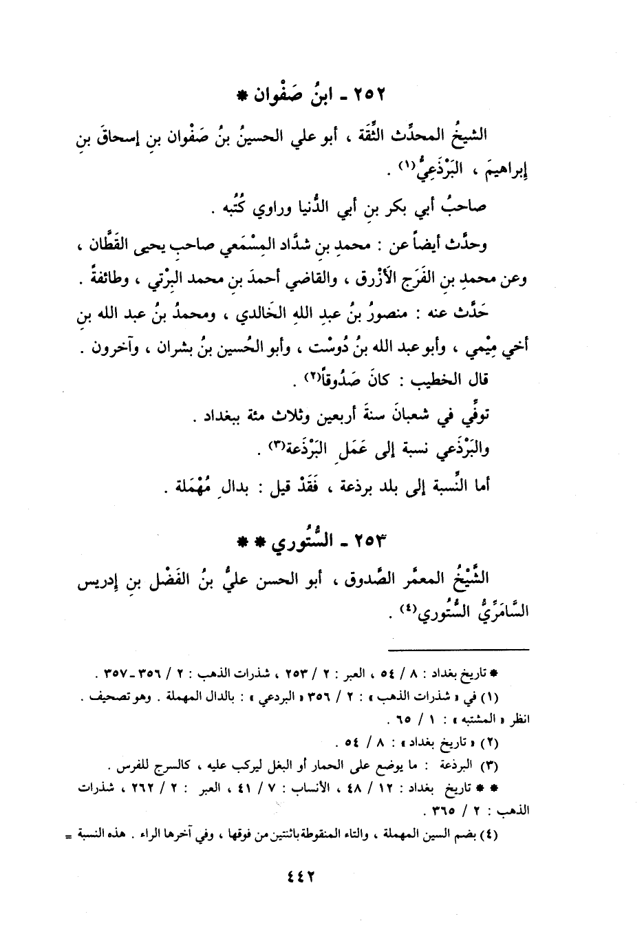 252 - ابْنُ صَفْوَانَ البَرْذَعِيُّ الحُسَيْن بنُ صَفْوَانَ بنِ إِسْحَاقَ *