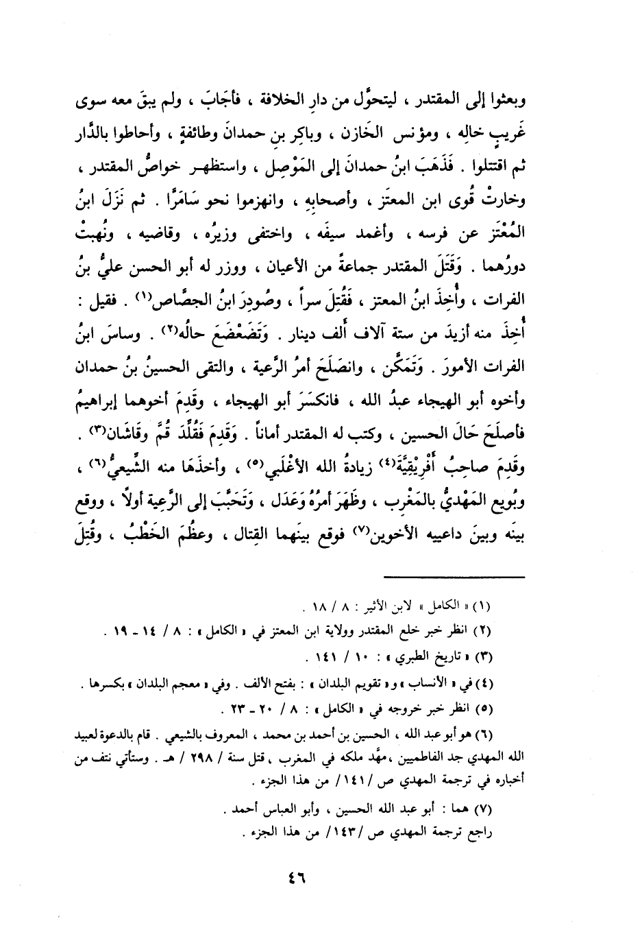 (7) هما: أبو عبد الله الحسين، وأبو العباس أحمد. راجع ترجمة المهدي ص / 143 / من هذا الجزء.