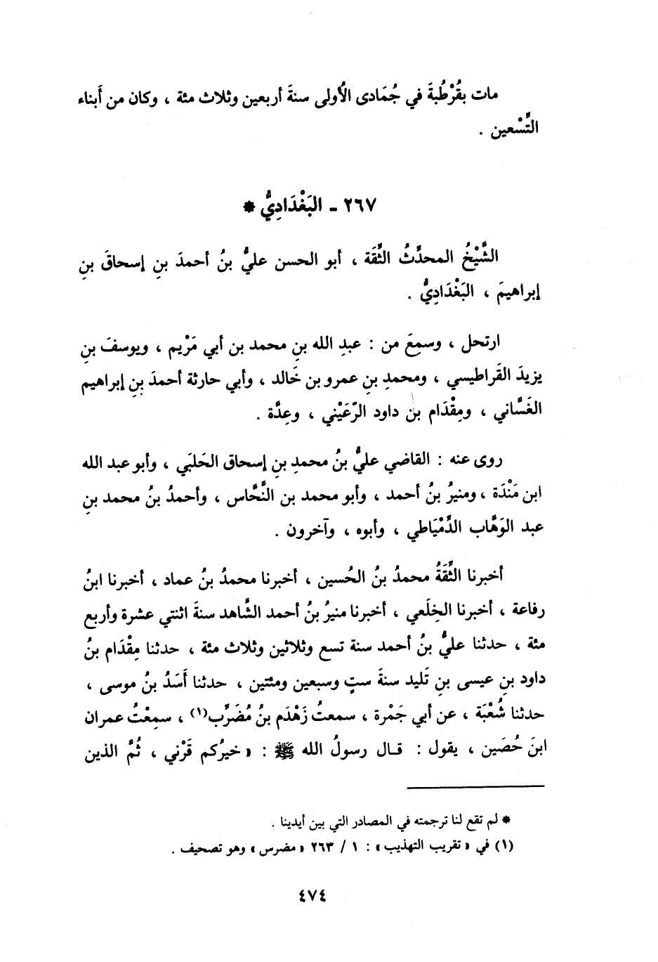 267 - البَغْدَادِيُّ أَبُو الحَسَنِ عَلِيُّ بنُ أَحْمَدَ بنِ إِسْحَاقَ *