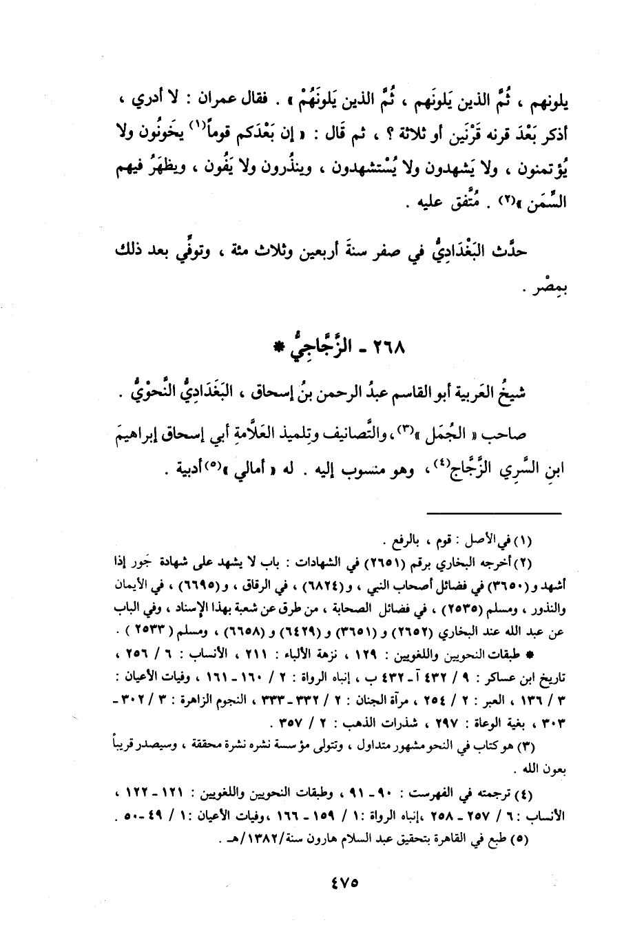 268 - الزَّجَّاجِيُّ أَبُو القَاسِمِ عَبْدُ الرَّحْمَنِ بنُ إِسْحَاقَ *