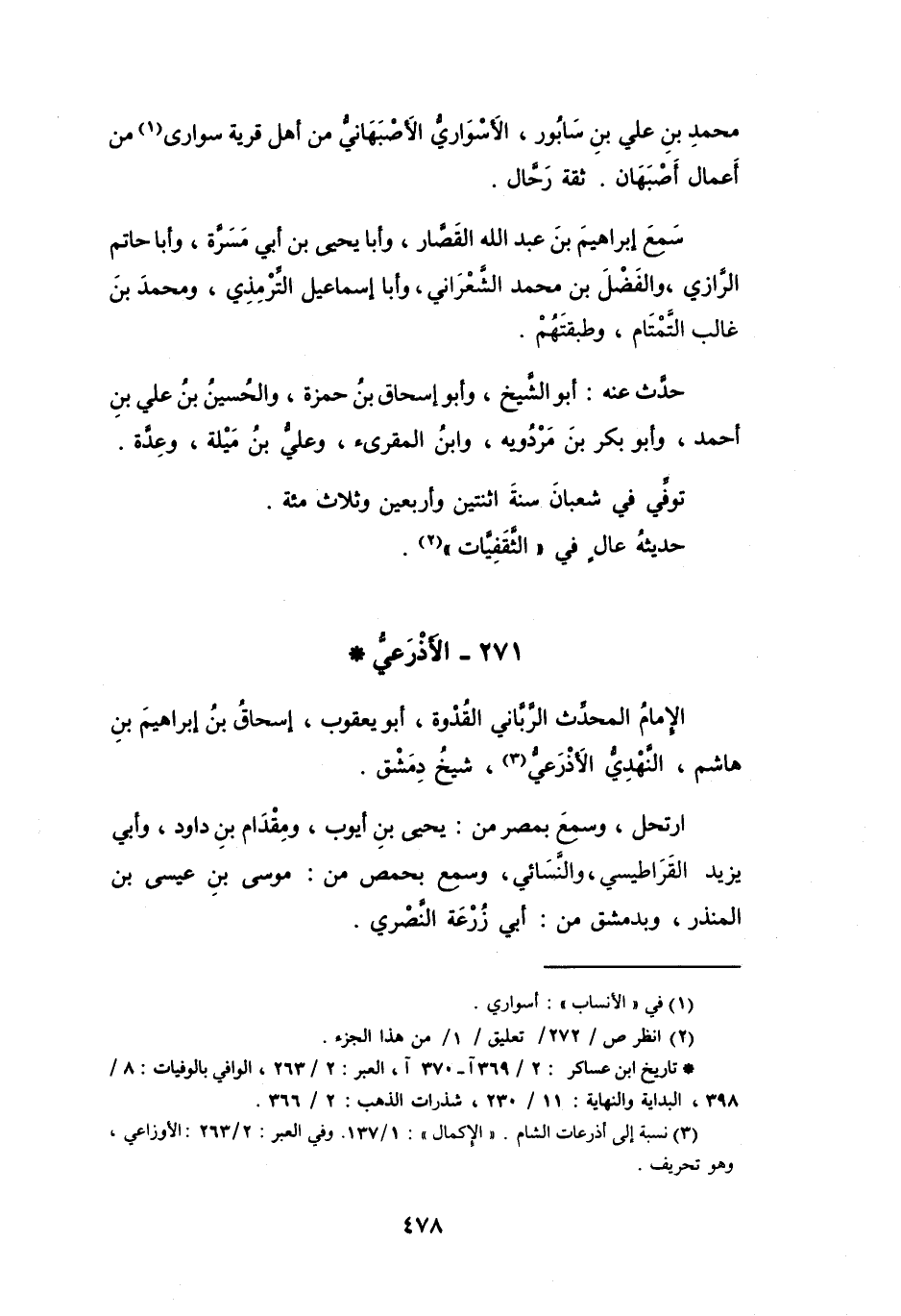 (3) نسبة إلى أذرعات الشام. " الإكمال ": 1 / 137. وفي العبر: 2 / 263: الاوزاعي، وهو تحريف.