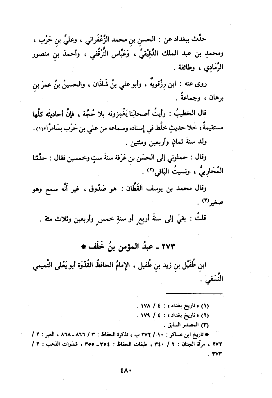 273 - عَبْدُ المُؤْمِنِ بنُ خَلَفِ بنِ طُفَيْلِ بنِ زَيْدٍ التَّمِيْمِيُّ *