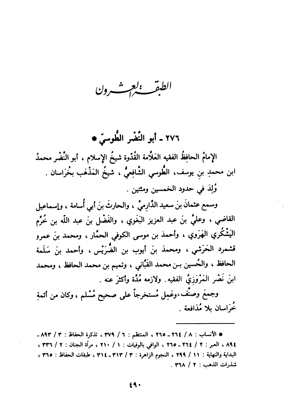 276 - أَبُو النَّضْرِ الطُّوْسِيُّ مُحَمَّدُ بنُ مُحَمَّدِ بنِ يُوْسُفَ *