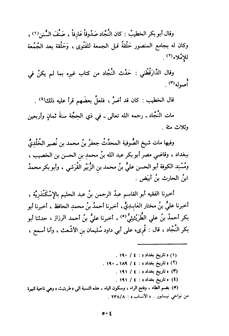 (2) " تاريخ بغداد ": 4 / 189 - 190.