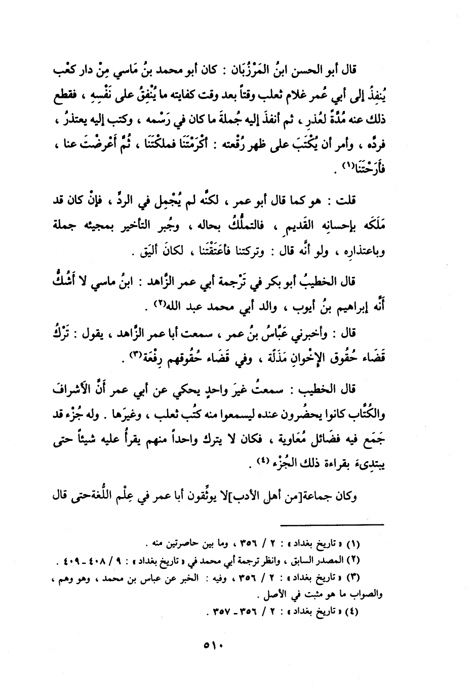 (4) " تاريخ بغداد ": 2 / 356 - 357.