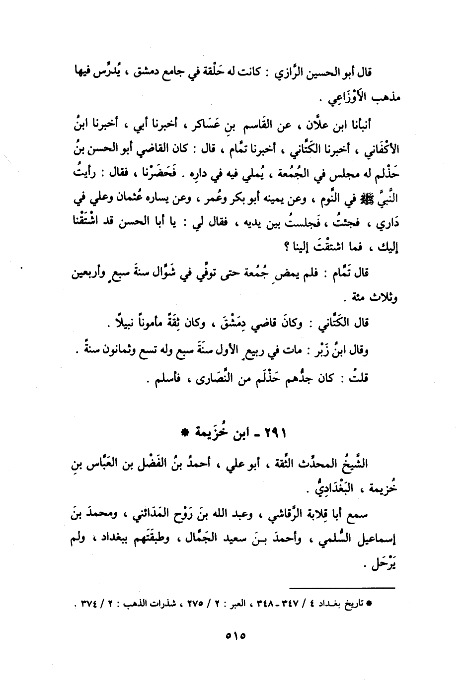 291 - ابْنُ خُزَيْمَةَ أَحْمَدُ بنُ الفَضْلِ بنِ العَبَّاسِ البَغْدَادِيُّ *