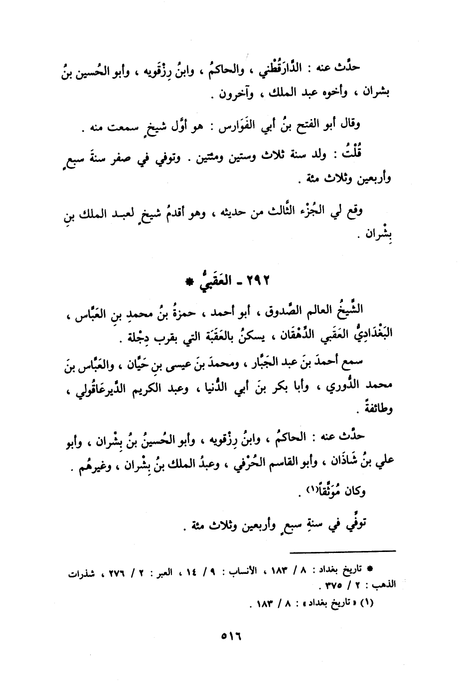 292 - العَقَبِيُّ حَمْزَةُ بنُ مُحَمَّدِ بنِ العَبَّاسِ البَغْدَادِيُّ *
