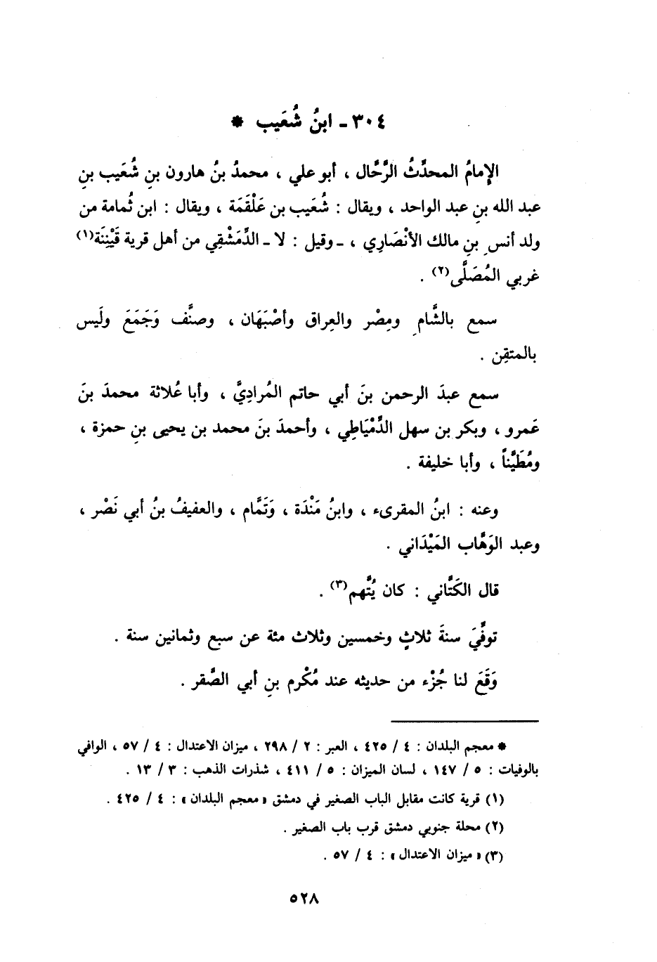 304 - ابْنُ شُعَيْبٍ أَبُو عَلِيٍّ مُحَمَّدُ بنُ هَارُوْنَ *